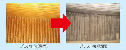 特殊な研磨材を圧縮空気でスケールに打ち付け除去するサンドブラスト工事を行いました。サンドブラスト工事は水分を含まない乾式工法ですので腐食の心配がありません。圧縮空気で研磨材を飛ばすので、人為的作業では届かないスケールまで除去できます。人為的作業と比較して短時間で除去できるので、労務コストが少なくて済むというメリットがあります。